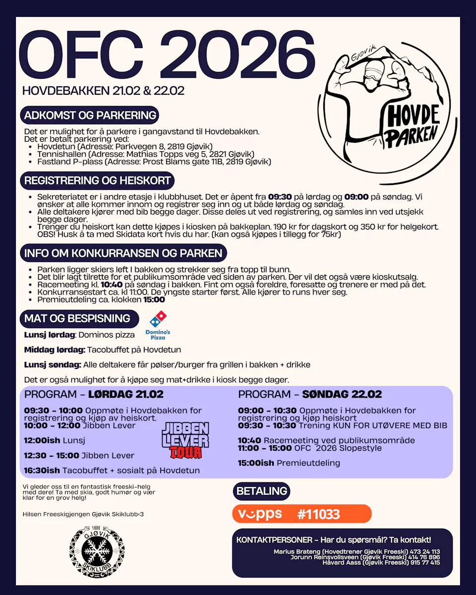Dette er helgen du ikke vil gå glipp av, enten du vil konkurrere eller bare se på! Så ta med skia, familien og det gode humøret, og bli med på en uforglemmelig freeski-opplevelse.